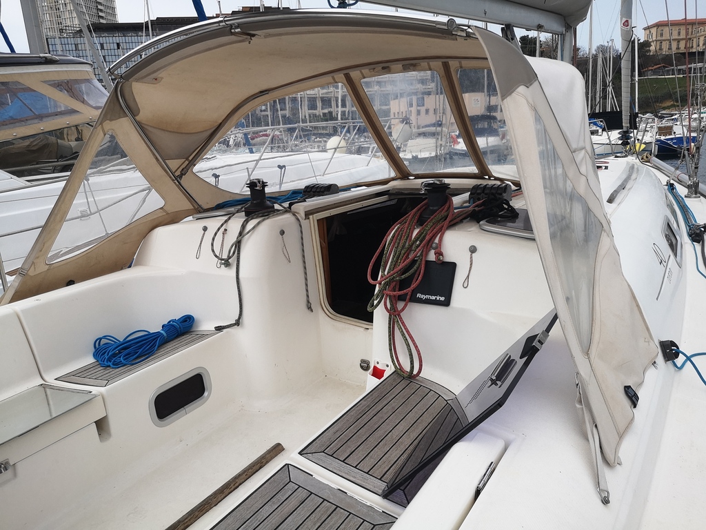 Capote de roof NV équipement pour Dufour 40,fermetures éclair, tissus,cristal le tout en très bon état, couleur beige, fenêtre centrale ouvrante, poches latérales. Je la vends car j'ai changé la couleur de la garde-robe de mon bateau en une autre couleur. La valeur neuve chez NV de ce modèle est de plus de 2000€