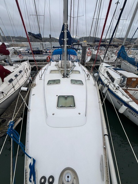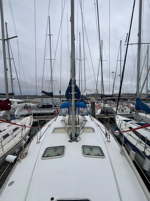 GV lattée, Génois sur enrouleur avec bande UV, Lazy bag, Sprayhood, coussins de cockpit, renvois au cockpit, winchs.