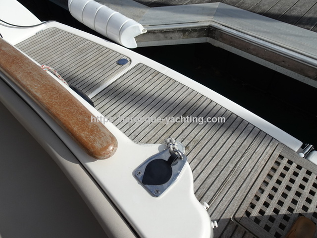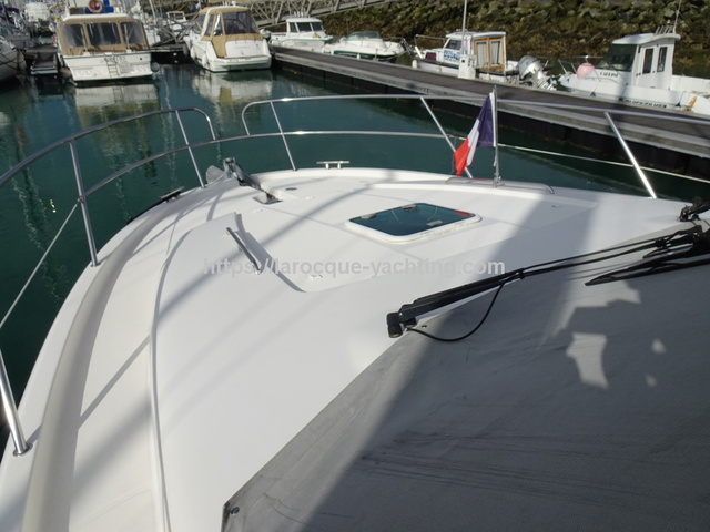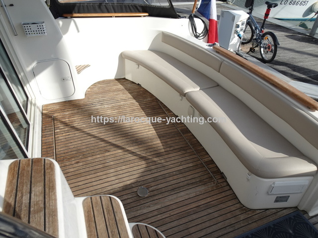 Propulseur d’étrave Max Power. Guindeau électrique Quick (2022). Mouillage principal ancre Delta + 60 m de chaîne + 20 m de câblot. Jeu de coussins de bain de soleil avant. Taud de camping effectué sur mesure, en parfait état. Jeu de coussins de cockpit. Table de cockpit. Pompe eau de mer dans le cockpit. Fond de cockpit latté teck. Echelle de bain. Douchette de cockpit. Plateforme arrière lattée teck. 1 Poste pilotage au fly-bridge. Taud de poste de pilotage. 2 Sièges pilotage et copilotage avec tauds de protection. 1 Bimini sur le fly-bridge. 1 Jeu de coussins de bain de soleil.