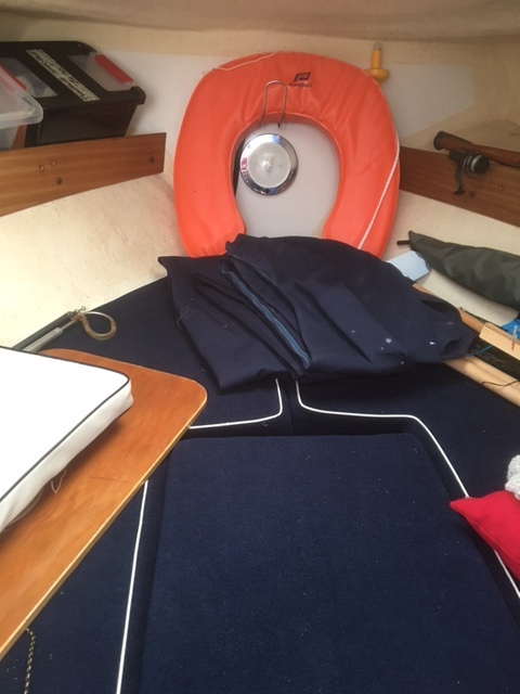 ECHELLE DE BAIN TABLE DE CARRE ET COCKPIT ET COUSSINS.