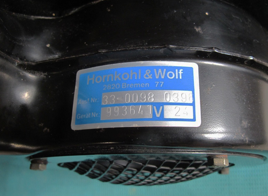 J'ai récupéré ce ventilateur robuste de la marque allemande Hornkohl & Wolf, fabricant qui n'existe plus semble t'il.