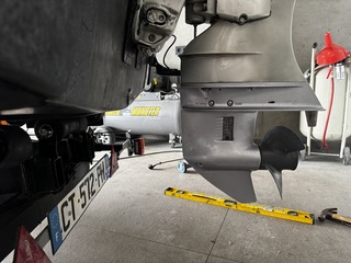 Résultat le bateau marsouine moins, mais le moteur plafonne à 5700 tr/min au lieu de 6000 et je perds un peu de vitesse. Dés que je lève un peu c’est recatastrophe