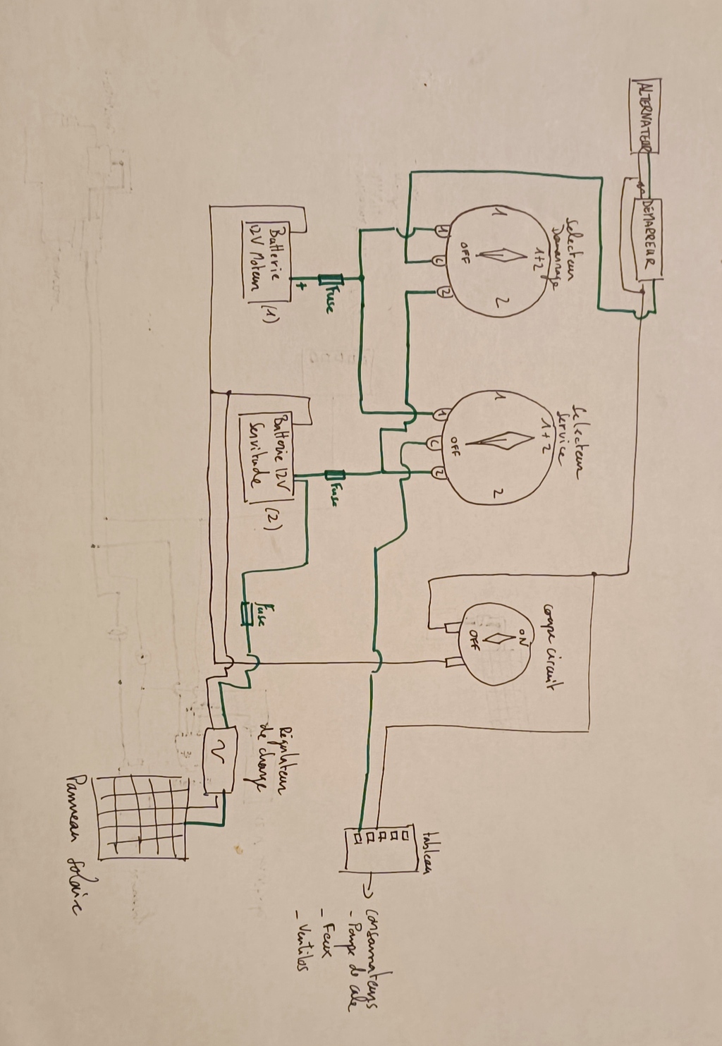 Tu veux voir aussi la possibilité de permuter les batteries en cas de décharges de l'une d'elle...Cela veut-il sous entendre que tu resteras plusieurs jours en mer ?