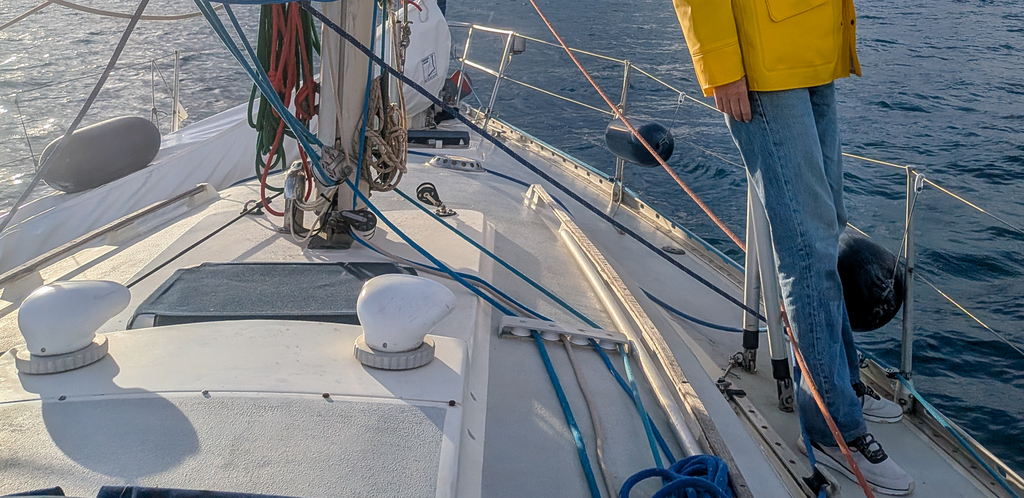 Hé, t'as bien le temps de ranger tes pare bat. On n'est pas occupé tant que ça sur un bateau en solo. Les pare bat sur les passe avant sur un beau bateau comme le tien... 🫣