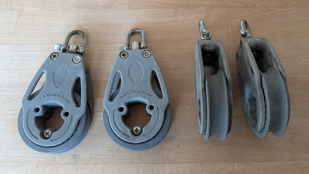 Je ne me trompe pas, sur mon bateau c'était des poulies de la gamme Control avec joues en plastique chargé de fibre de verre.