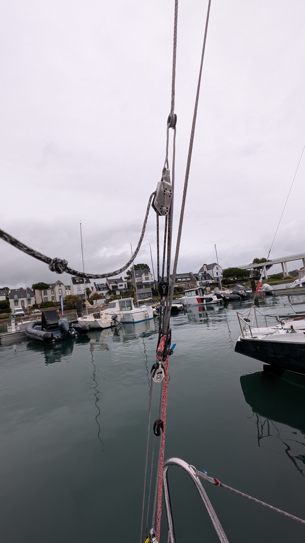 En fait c’est le palan et les poulies avec le coinceur qui prennent pas mal de place et qui risquent de taper dans la bôme