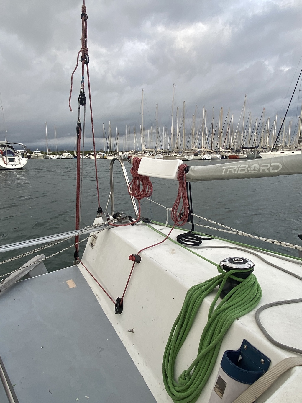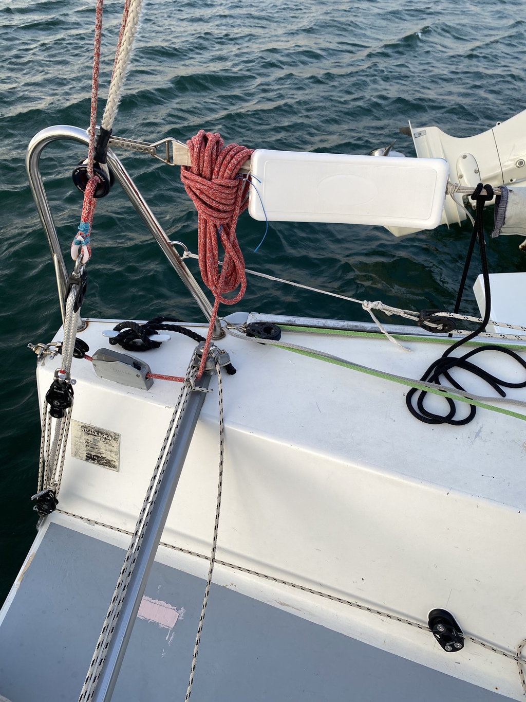 En effet quand on à les voiles sur bd les écoutes de spi ou de code revenant au winch cockpit tu a un bout qui traverse en hauteur et qui monopolise le winch et qui prends une place énorme