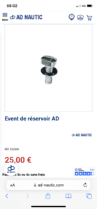 J’ai pris un bidon 25 l en hauteur que je sanglerais et que je vais raccorder à cet évent