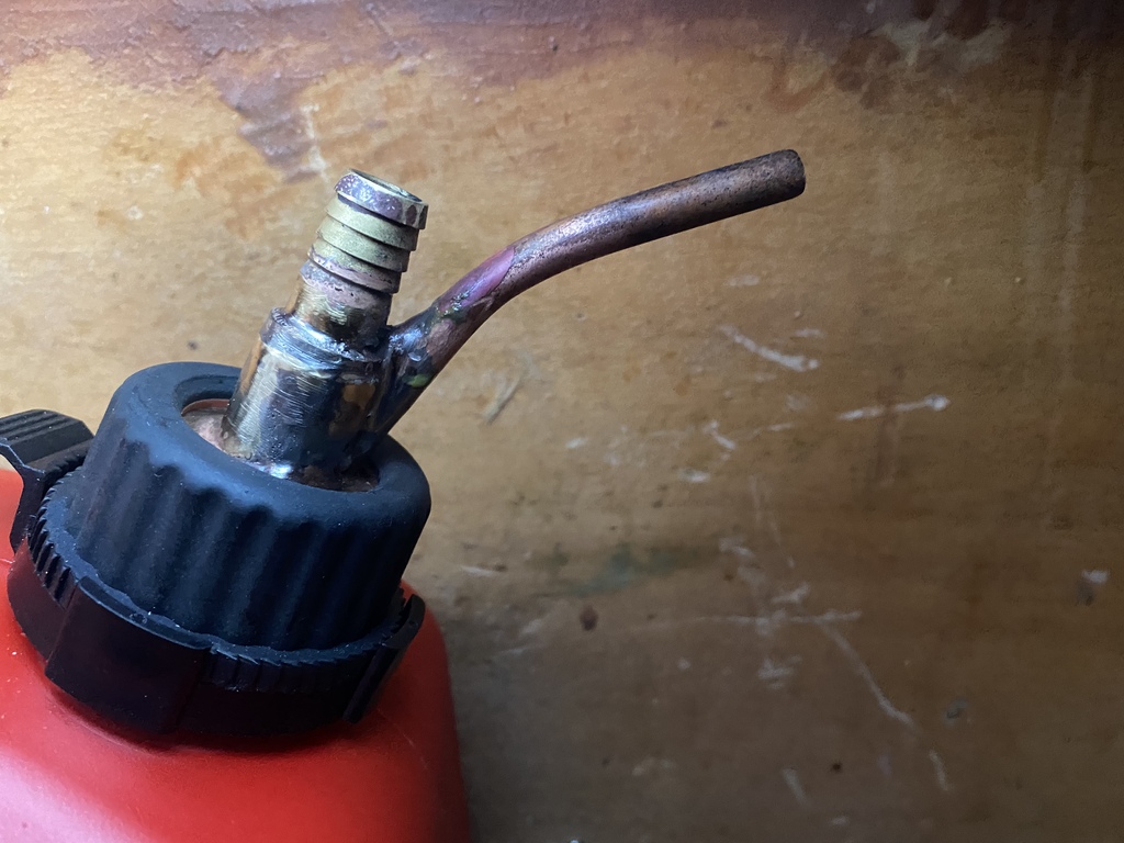 J’ai fabriqué une pièce en laiton sur laquelle j’ai brasé un tuyau cuivre pour le carburant et un raccord pour l’évent