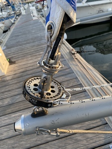 Maindo:C’est ce systeme que j’ai à bord. C’est du bon matos je trouve. On note sur cette video que l’equipiere enroule en empoignant la bosse depuis la plage avant… c’est ce qu’il y a de mieux car prise directe et frottements vraiments reduits. La mienne fait plus de 22m aller retour (bateau de 11m et 1m de bout dehors), ça fait long et rien que le poids propre de la bosse fait des frottements… je me tate à la couper pour uniquement faire un va et vient frappé au pied de mat. Plus court plus leger et plus simple à ranger. De toute façon il faut aller à l’avant pour affaler la voile… le seul truc qui m’arrete c’est la gestion de l’ecoute en même temps en solo, la renvoyer vers l’avant n’est pas très commode ·le 18 sept. 00:19