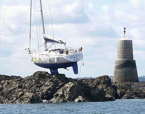 Vu à Jersey dans le bassin à échouage un bateau posé sur sa quille à ailette, sans béquilles. Il gîtait pas mal... ça nous a intrigué.