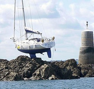 J'ai pas fait de photo de celui vu à Jersey mais son équilibre était... limite, vu du quai. Le jour où il basculera... le mât ira taper sur le quai... pas bon !