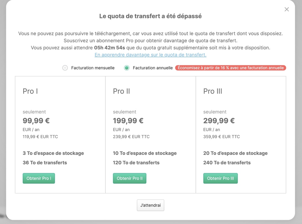 Pour tout transférer il faudra payer ou attendre car il y a un quota