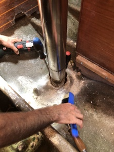 James :Quelle misère cette conception d'epontille !J'avais eu aussi un souci sur un vieux Dufour 4800 qui mettaient un tube plein en acier enrobé d'un tube inox super fin.À Martigues dans un atelier les soudeurs avaient emboîté deux tubes inox et soudé une platine aux deux extrémités pour avoir qque chose de fiable.Si tu peux fais en sorte que l'epontille soit accessible dessus dessous.Bon courage !·le 28 sept. 09:15