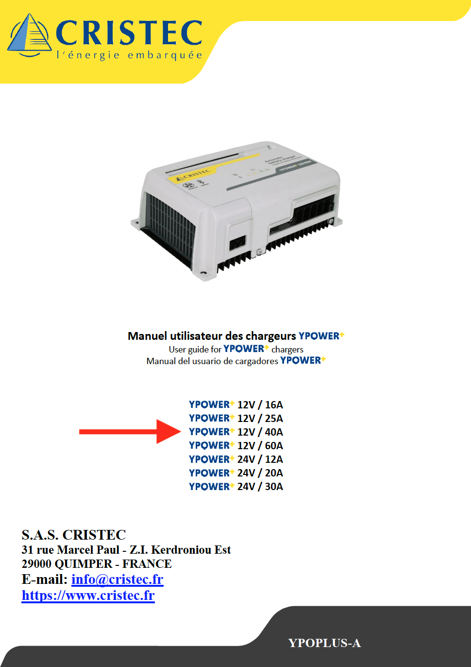 • le chargeur de quai 25A n'étant pas compatible avec des batteries au lithium, j'ai donc changé de chargeur pour un Cristec 40A. Vu que l'ancien était câblé en 16m2, et que le nouveau nécessitant également du 16m2, c'était un changement 1 pour 1, sans rien changer.