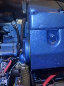 Salut Espadon, je l'ai fait sur mon MF635 il y a 2 mois. Mon echangeur était HS, filetage de fixation d'une coupelle arraché. ... Très facile à faire. Il faut démonter l'alternateur pour avoir accès côté gauche de l'echangeur et déposer la durite qui va au coude d'échappement. Les coupelles sont fixées par un boulon de 10 et il faut taper sur la coupelle chaude (la droite) pour la décoller. Pour ça tige métallique sur une oreille de la coupelle. Ensuite manchon bois pour chasser l'echangeur. Attention, pour mon Bateau l'echangeur ne peut sortir que par l'avant, et il butait sur le pont...... Obligé de remonter le moteur un chouia avec les ecrous des boulons des silentblocks. Pour ça desolidariser le tourteau pour pas forcer sur la ligne d'arbre.... Ensuite remontage avec les bons joints (2 joints + bague inox). Voilà à ta disposition pour plus d'infos.