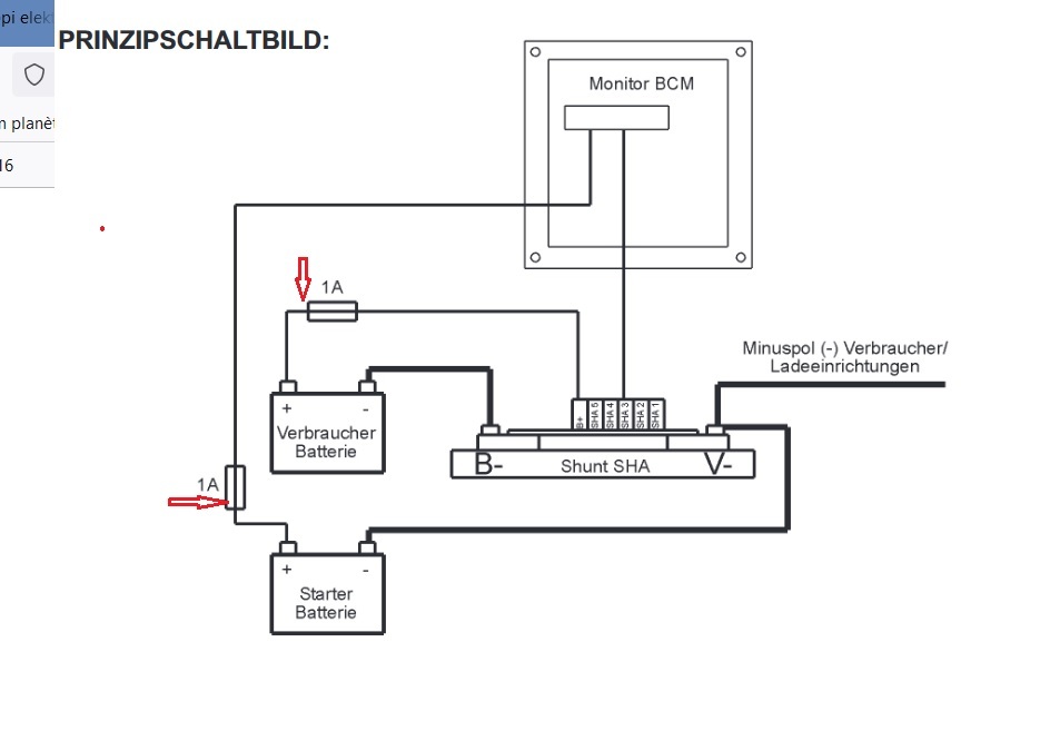 La partie électronique du shunt à besoin d'une tension pour fonctionner; c'est en principe la tension prise à la borne +B de la batterie service; Toujours en principe, au départ (+B) de la batterie services , il devrait y avoir un fusible de très faible intensité (0,1A pour Victron).