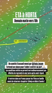 Apparement sa GV est HS, il a bien ramassé dans la tempête et se réjouit d'arriver à Horta où un comité d'accueil organisé par Thais Le Cam l'attend.