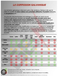 Je vous soumets un tableau sur la corrosion galvanique qui précise les risques plus ou moins élevés dans la cohabitation.