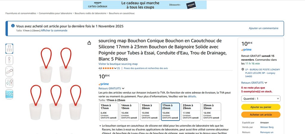 Osez le bouchon en silicone "design" acheté sur Amazon (voir photos).