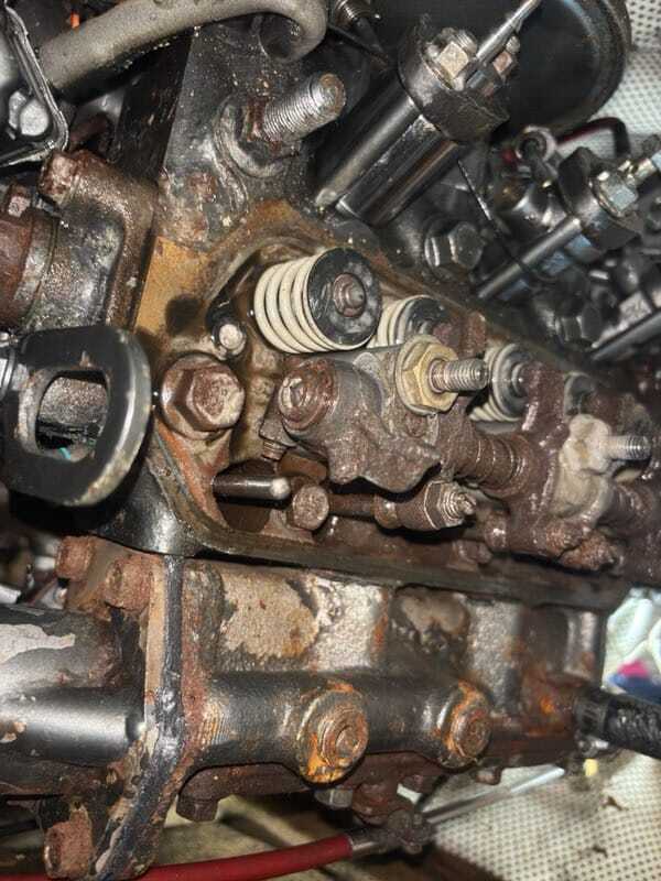 La pompe d'injection semble en effet réclamer une révision. Certaines parties internes peuvent rester coincées par gommage d'un gazole trop vieux ou corrompu. Par exemple, l'orifice de calibration principal, celui qui est sous la plaquette de blocage sur la face avant. D'autre part, si le gazole qui remplit le carter vient d'un défaut d'étanchéité des (ou d'un seul) mécanismes d'injection à piston, une révision le mettra en évidence à condition de pouvoir la tester en pression, ce qu'un atelier diéseliste fait couramment.