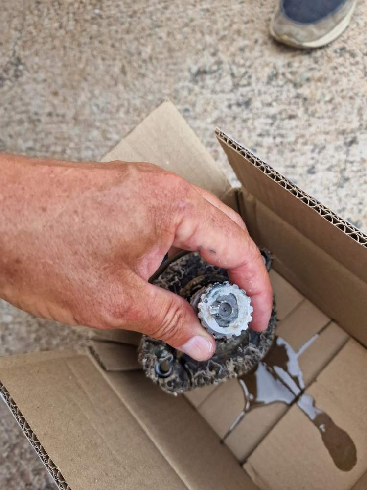 Merci pour vos retour en fait j'ai perdu l'hélice au mouillage en faisant comme d'habitude une petite marche arriére pour mordre ds le sable avec l'ancre et c'est le lendemain que j'ai retrouvé et fixé par mon bricolage l'hélice intact sans choc visible... voici en photo le bout de l'axe du saildrive qui à été sectionné.