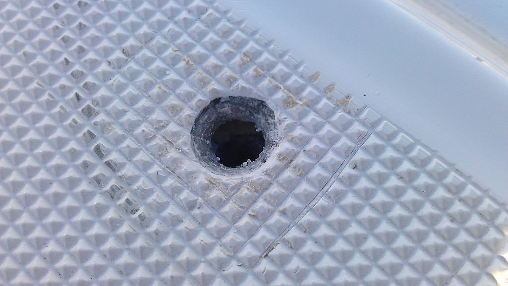 Sur la photo on devine l'espace entre le pont et la coque à l'interieur du trou.