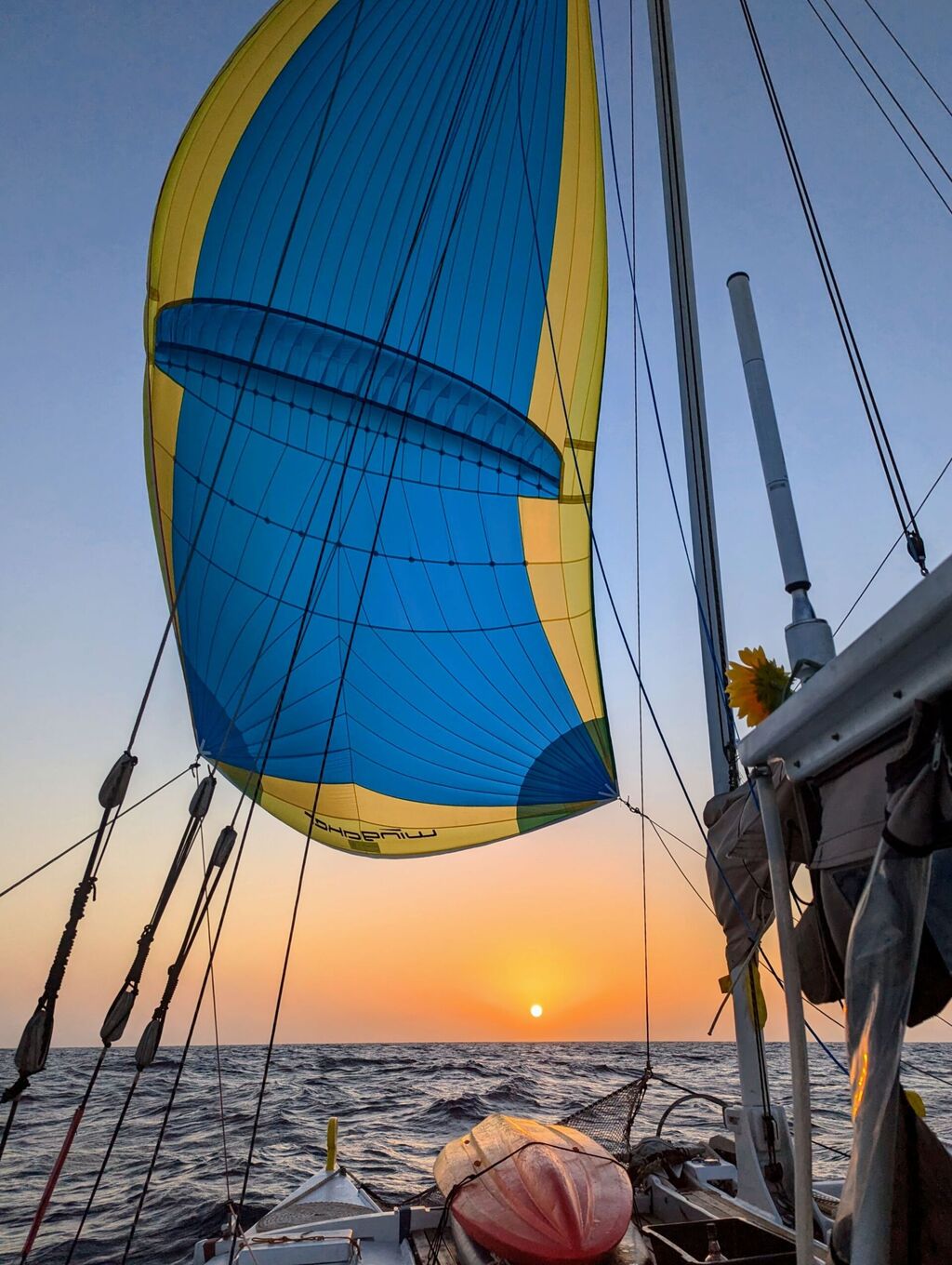 Avec 18 à 20 nœuds de vent, le Gleda file en moyenne à plus de 8 nœuds, et en surfant sur la vague, il peut atteindre 18 nœuds. Le bruit est incroyable, avec des secousses et un vacarme infernal quand on est couché dans sa couchette. On est toujours sur le qui-vive.