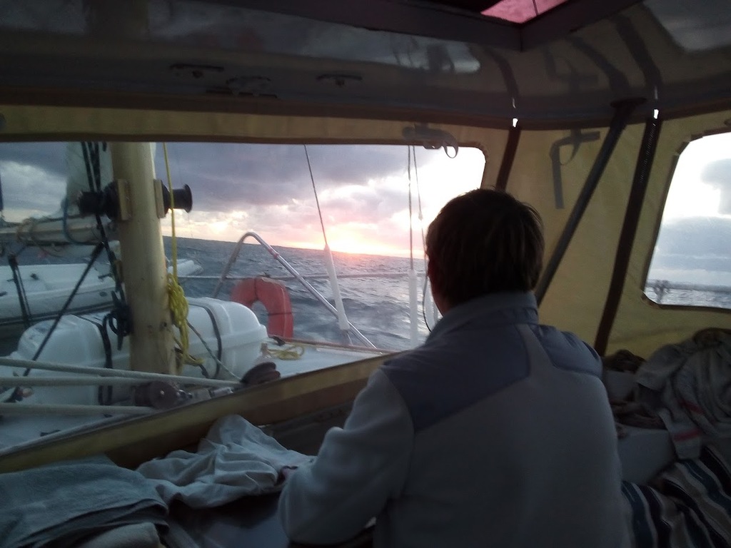 Un petit point qui m'étonne chez les bateaux français, c'est le peu de protection du cockpit. Dans les coins ou on est, il arrive relativement souvent qu'il fasse froid, humide ou plus. Veiller/barrer/ manœuvrer à l’abri est quelque chose qui, pour nous qui avions essentiellement navigué sous le tropiques, nous semble tout à fait nécessaire dès qu'on en sort.