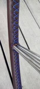 J'ai fait l'an dernier ma barre à roue avec le kit Botalo, en croute parce que moins cher, mais le résultat est très bon. Tout est fourni, y compris le fil et les aiguilles. J'avais trouvé après installation que le cuir ne serrait pas bien la barre, j'avais pensé que c'était taillé un peu grand, mais après un an il a rétréci et serre très bien.