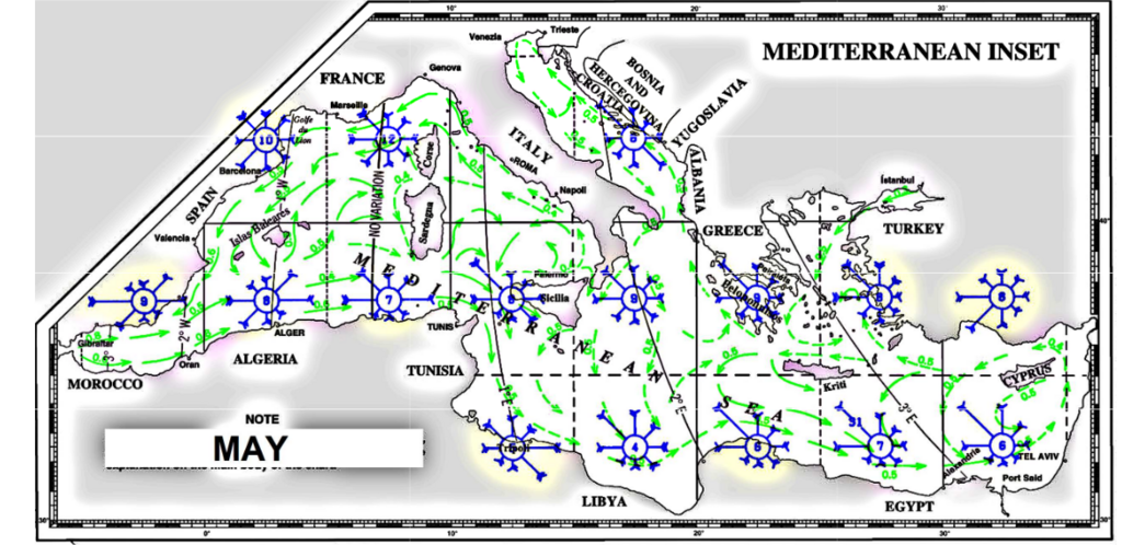 Avec des bonnes voiles de petit temps... tu mets toutes les chances de ton côté, mais ce serait quand même étonnant que tu fasses tout à la voile pure, si tu es contraint par une date d'arrivée. La Méditerranée en mai !