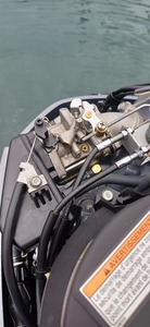 Je viens d'acheter un yamaha 6cv F6CMH d'occasion pour remplacer mon Honda qui a définitivement rendu l'âme. Le moteur est très propre hors et sous le capot. Problème : il tient mal le ralenti et je constate une fuite abondante d'essence via un trou sur le dessus du carburateur (cf photo). Ce trou n'est pas fileté, je n'ai pas l'impression qu'il manque une vis a cet endroit. Quelqu'un aurait une idée de quoi il s'agit et comment régler ça ?