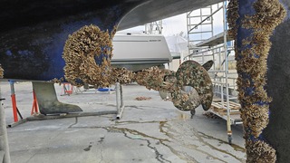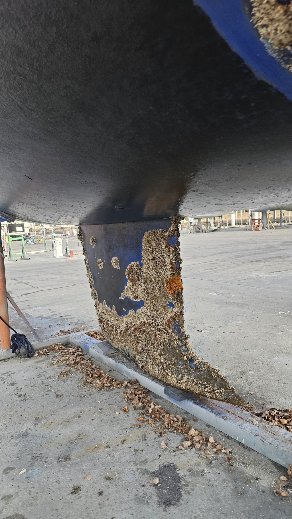 A voir les photos c'est uniquement un problème d'antifouling du à une période prolongée dans un milieux très cherché de micro organismes. A part quelque traces de rouille sur la quille je ne vois pas de corrosion particulière sur l'hélice.