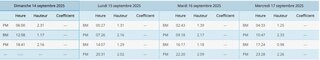 j'ai par exemple pour la marée haute de ce soir 13/09/2025.
