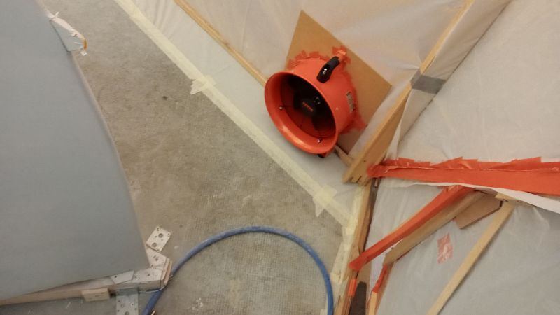 Le 17 juin j'attaque l'apprêt. Aux 3/4 de la première couche, l'aspirateur rend l'âme dans un grand bruit.