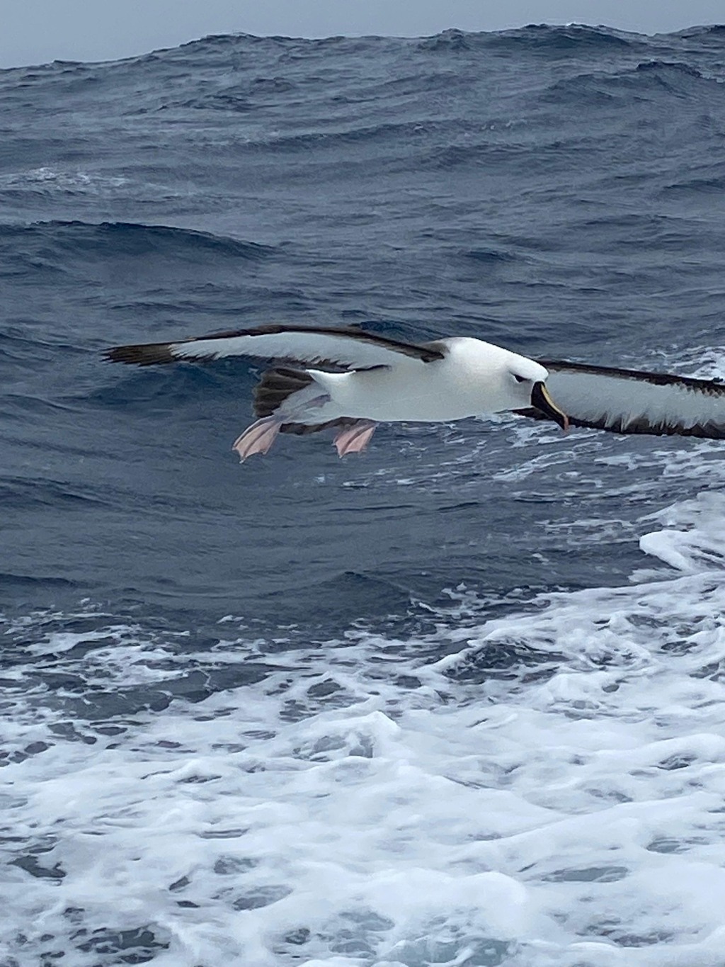 actuellement nous avons 27-28 nœuds de vent en moyenne, ce qui nous permet encore de tenir une voile d'avant sur bout dehors et de filer à 18-19 nds de vitesse, sympa !