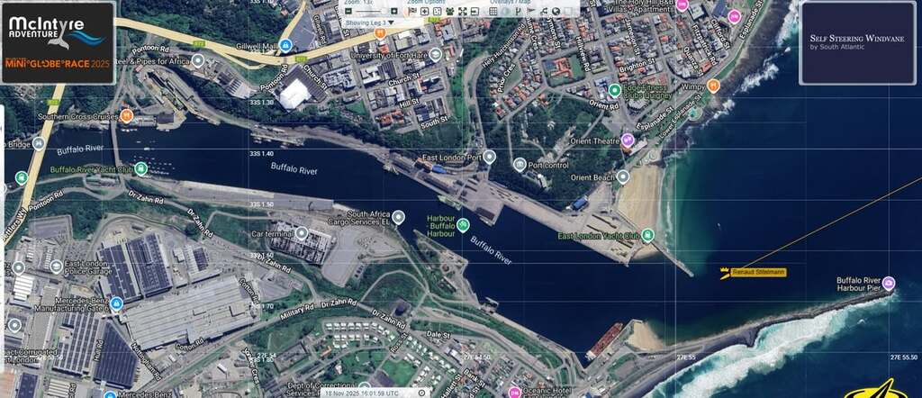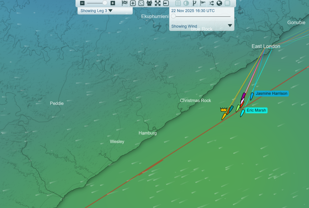 Renaud est en train d'entrer à East London, probablement pour s'abriter du vent contraire qui devrait se lever... suivi de tous les autres ?