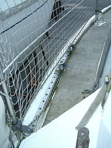 allure portante, en cas de long bord je dépasse les écoutes à l'extérieur des chandeliers. Comme quoi rien n'est parfait.