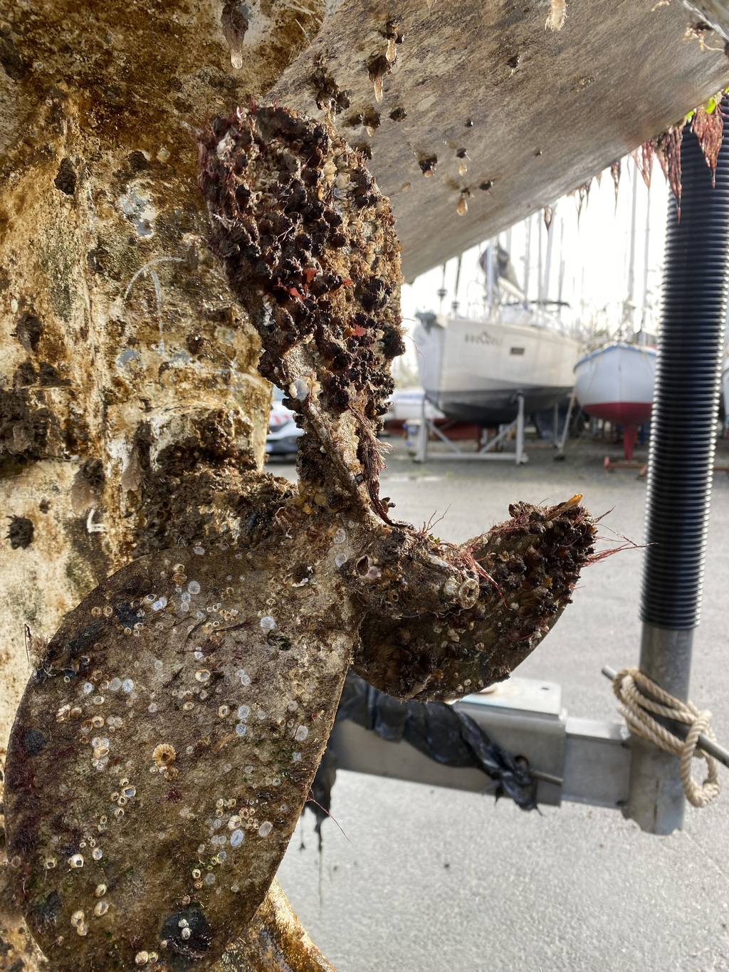gorlann29:@chris06550: je n' ai jamais mis d' antifouling sur mon hélice (en cupro-nickel) ni sur mon arbre et je n' ai jamais eu de problème de concrétion.De plus, tu écris: "il n y a aucun rapport entre anode et concretikns qui se deposent... seuls l immobilite et le non traitement antifouling donne ce resultat." c' est totalement faut!!! vas donc faire un tour sur le site de Galvatest et tu verras qu' une sur-protection galvanique provoque justement un développement rapide de concrétions, en plus d' un décollement de peinture dans la zone de l' anode.·le 30 nov. 09:17