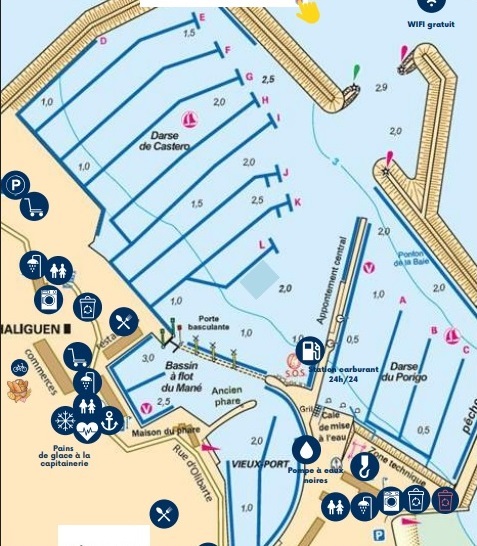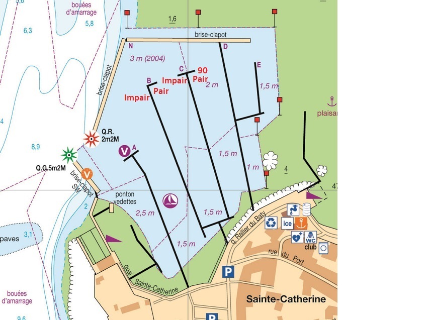 en bougeant dans les ports un peu hors juillet aout parfois il n y a pas de service de rade mais uniquement des contacts par radio ou on entend ''allez place J45'', on trouve les petits plans avec les lettres des pontons mais pas la numerotation, si vous connaissez les numeros des places ces ports pourriez vous les indiquer, ou a la limite deja savoir cote pair ou impair peut aider.