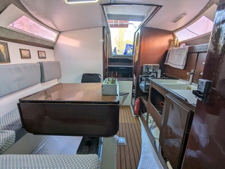 Enfin, il est équipé d'un HB en puit dans la jupe, ce qui me va très bien en ce qui me concerne, car je considère qu'un voilier est fait pour marcher à la voile, le moteur n'étant fait que pour entrer et sortir du port.