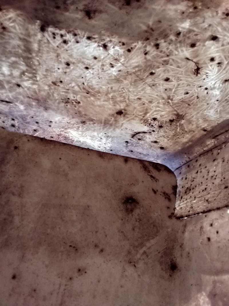 En inspectant mon réservoir une fois démonté, je me rend compte que la peinture blanche intérieure n'est que sur le fond du réservoir ... et que les autres surfaces sont pigmentées de tâches noires (champignons ?) je ne sais même pas si cette peinture est alimentaire.