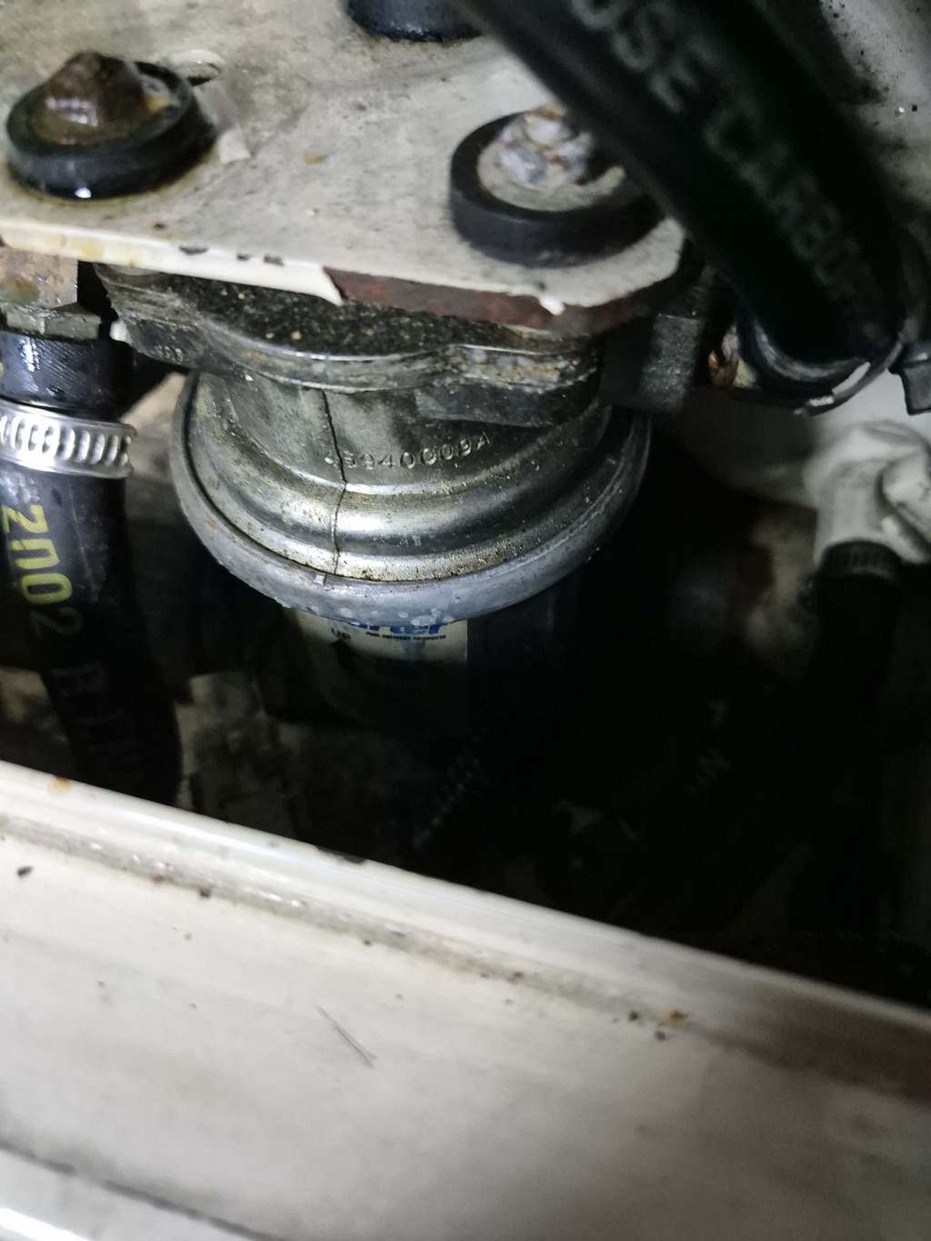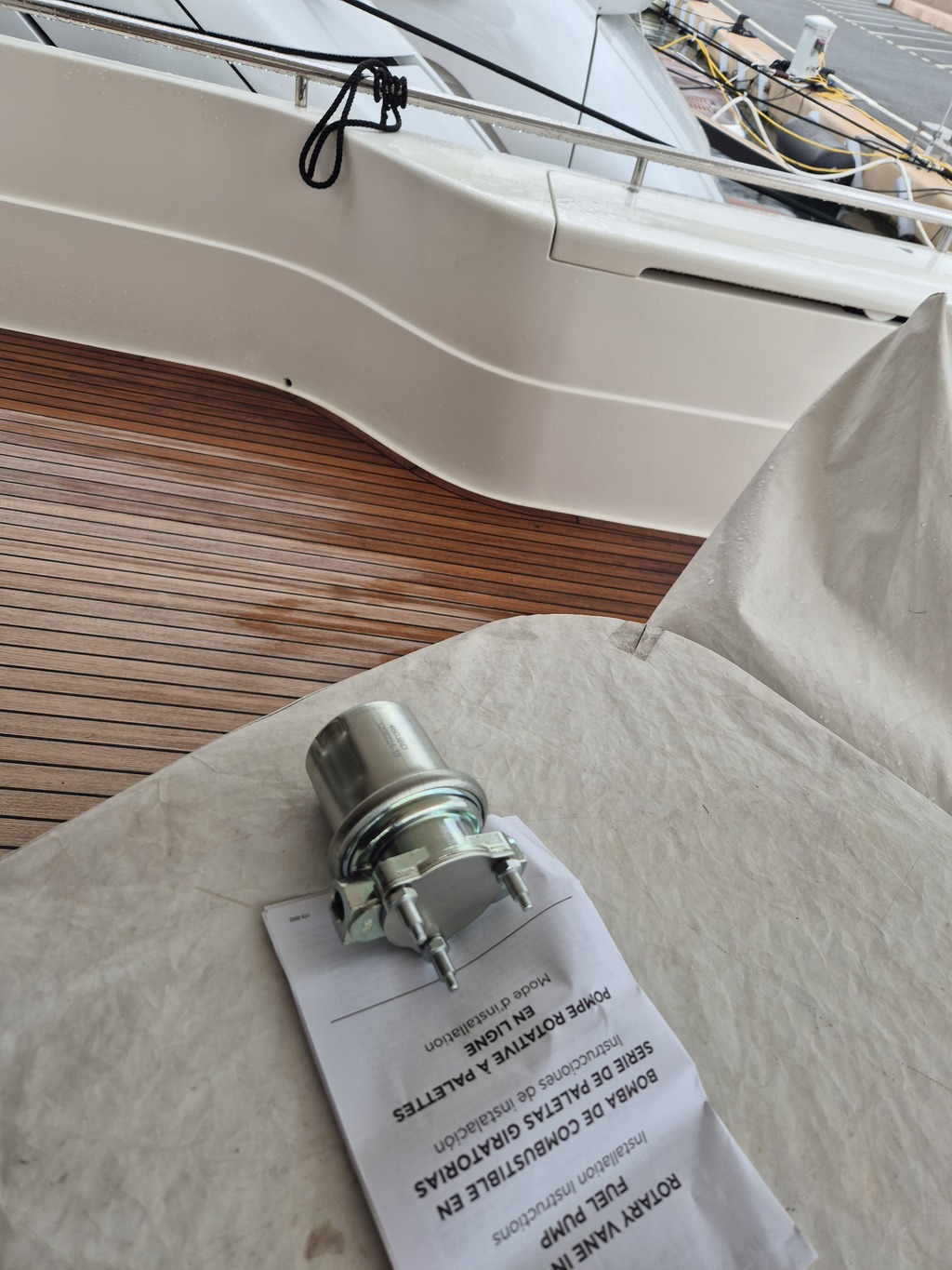 On peut aussi envisager que si cette pompe est montée juste en sortie de réservoir et si le carburant a 10m a parcourir, si le bateau bouge et si le niveau dans le réservoir est bas, elle peut aussi pomper de l’air qui va rester en quantité suffisamment importante dans la canalisation pour provoquer un désamorçage. Mais sur plusieurs moteurs successifs, ça ne tient pas non plus.