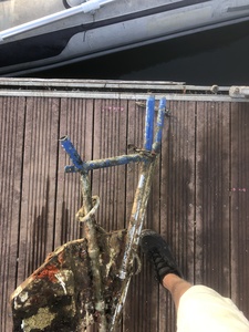 Récupéré un portique après un an sous l’eau. Opération intéressante. J’entends tout et son contraire que l’inox ça cristallise sous l’eau. Qu’on le voit pas que c’est à cœur. Etc.
