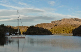 L’arrêt à Camerones est sans intérêt majeur (diesel en bidons et petite alimentation en produits frais). En revanche la caleta Hornos au sud est est magnifique et permet de tester les amarres flottantes pour la première fois accrochées aux arbres et rochers.