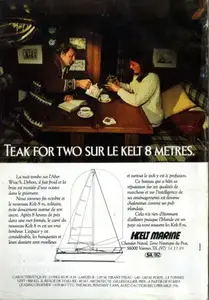 Pour ce qui est des voiles, il est équipé d'un génois sur enrouleur, d'une trinquette sur enrouleur, d'un bout dehors pour le spi asymétrique, et des voiles de sécurité; Un génois et une grand voile en rechange.