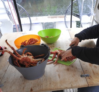 La dernière solution est Puerto Eden où on trouve du diesel (un peu plus cher à cause de l’isolement) et des produits frais commandés ou pas en avance. Le petit village est souvent approvisionné deux fois par semaine par ferry de Puerto Natales … Sans oublier les délicieuses Centolla…