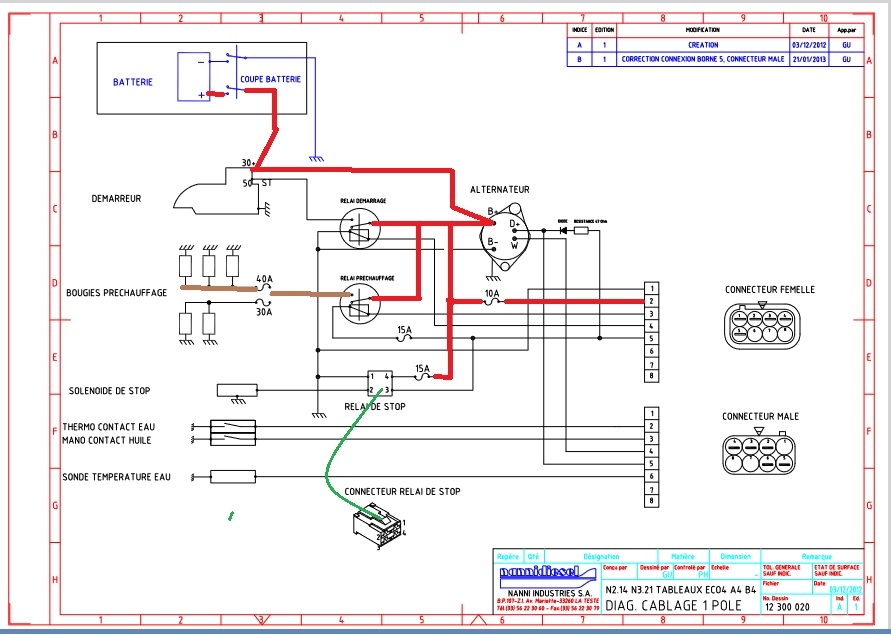 Mamita:Re, Oui, ca arrive "aussi" sur ces connecteurs: connecteur 1 moteur/câble faisceau, et connecteur 2 câble faisceau/ tableau de bord.Nota : Sur un Nanni 3.90HE, j'ai déjà vu une fiche interne de connecteur (préchauffage) fondue ! Il a fallu la trouver celle là ! ·le 15 avr. 2024 18:21