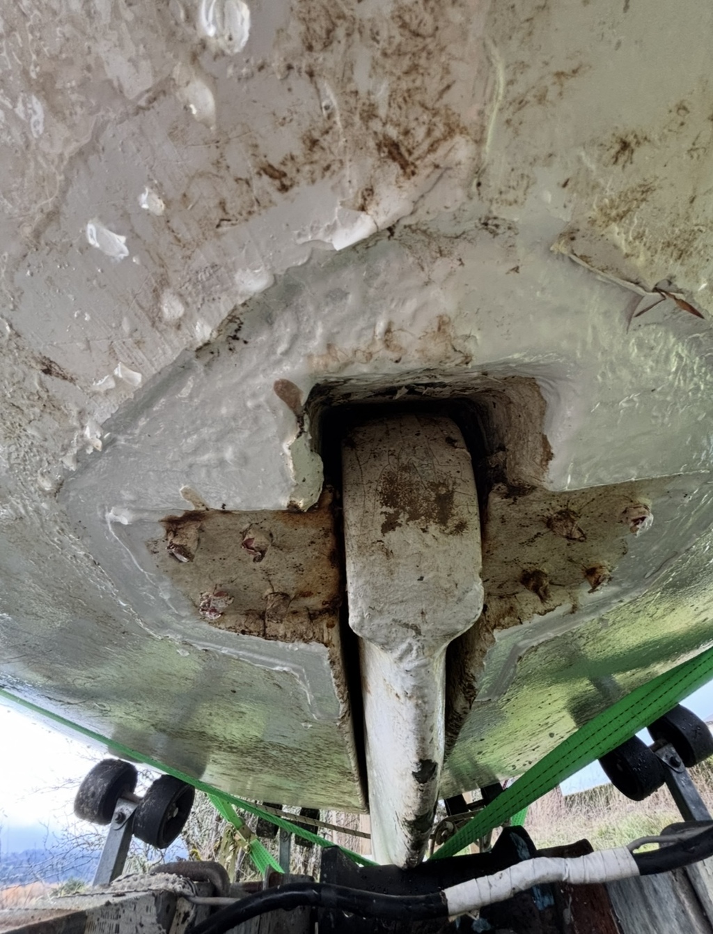 Sous l’eau j’ai vu que la tige qui relie le systeme à la dérive était décrochée (toujours fixé coté dérive mais plus solidaire du système au dessus)
