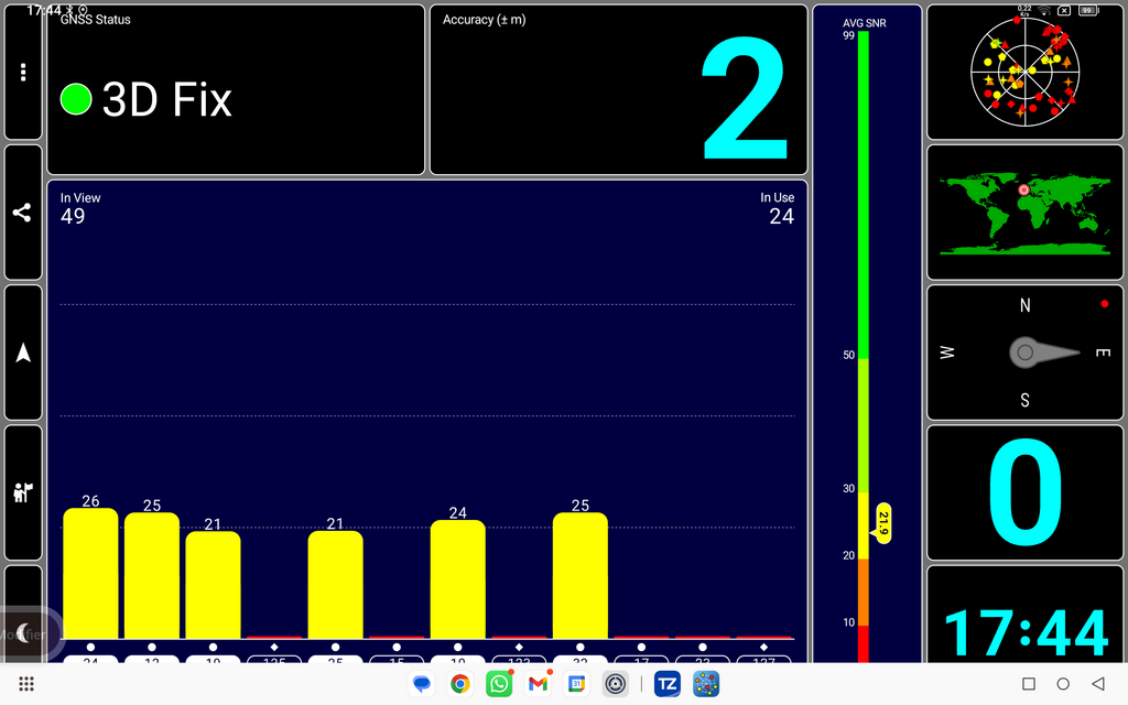 Puis ma tablette avec 2m de précision avec 49 satellites visibles et 24 utilisés. (GPS/GLONASS/Beidou/Galileo)